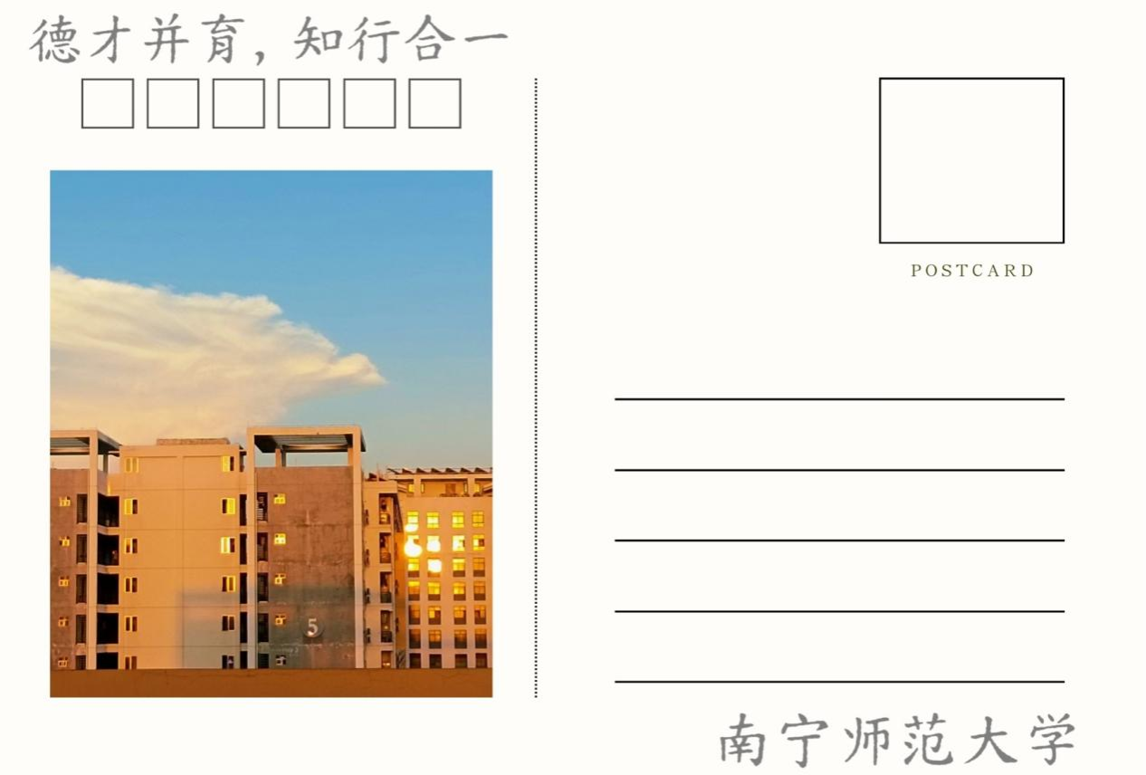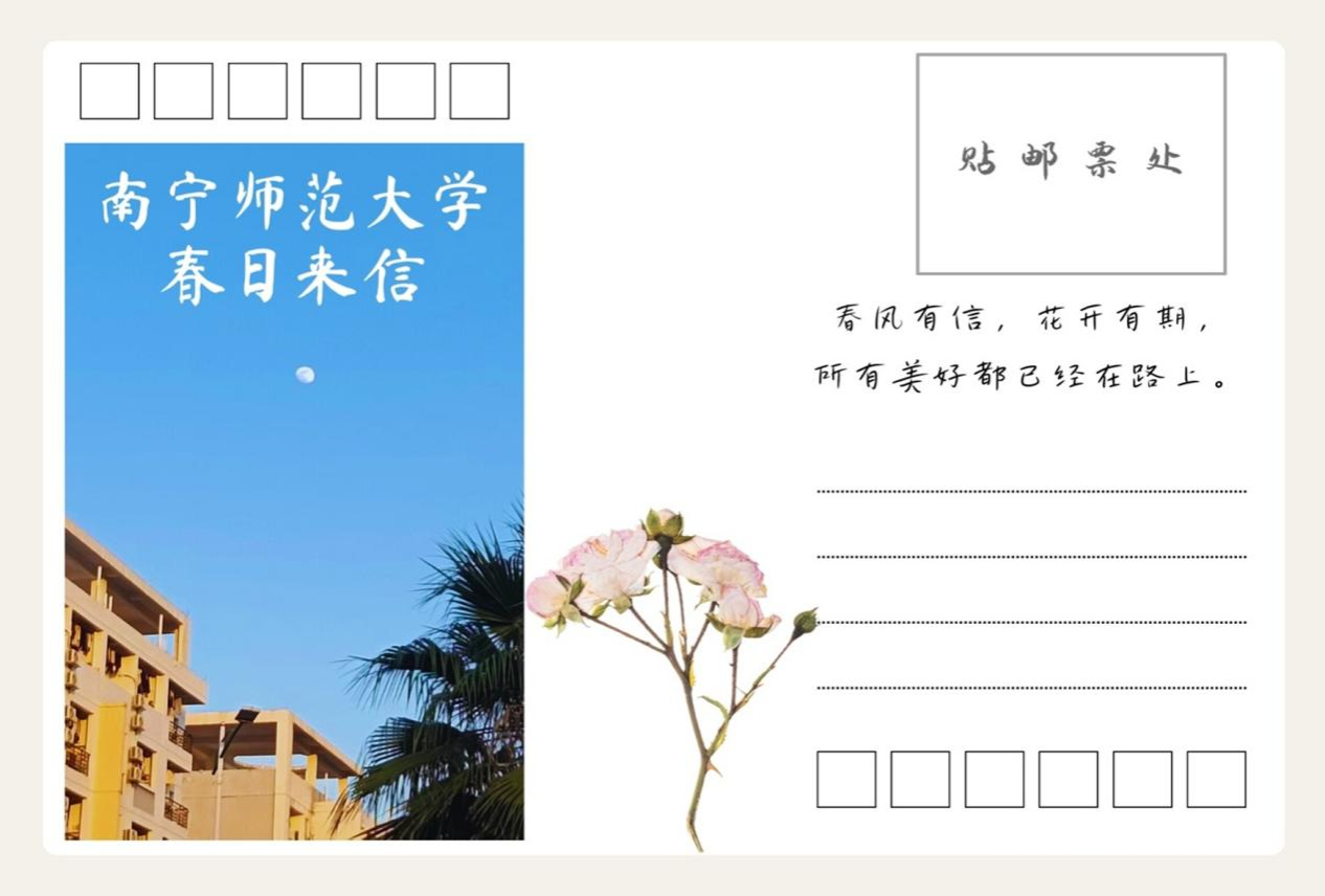 本次活动让青年学生们借以明信片的形式,诠释了南宁师大美好春日。不仅培养了学生的绘画爱好,发挥了学生的动手能力,又提高了学生的艺术审美。