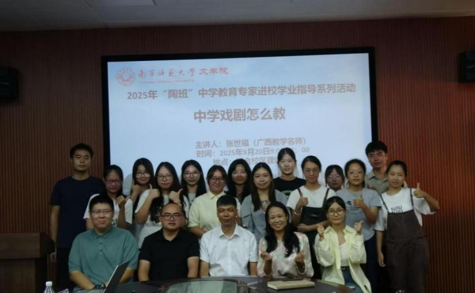为贯彻落实《汉语言文学专业陶行知实验班2025年建设方案》中“强化实践教学、深化校地协同育人”的精神,进一步提升学生的中学语文教学实操能力,9月20日上午,必赢3003no1线路检测中心在理综418教室举办了首场“中学语文教学实操指导活动”。广西教学名师张世福老师受邀莅临必赢3003no1线路检测中心,陶班负责人王毅老师、语文课程与教学论教研室陈亚飞老师,学院2023级陶班学生、2024级学科语文研究生和2025级学科语文研究生参与活动。