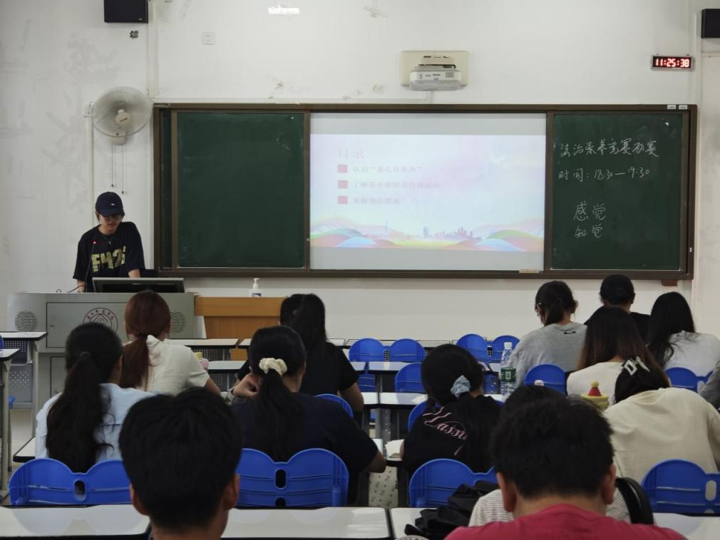 班会围绕“秋季开学”与“健康防疫”两大主题通过PPT演示、主题讲解、知识普及和案例分析等形式开展。首先围绕“秋季安全第一课”,讲解“三节三爱”、宿舍管理规范、安全法治案例及防范电信网络诈骗教育,明确新学期要求,加强校园思想价值引领,提升同学们的文明法治素养;接着聚焦“远离基孔肯雅热,筑牢健康防线”,科普“基孔肯雅热”症状、传播途径及预防措施,推进爱国卫生运动落地,强化学生防护能力。最后,由辅导员和班主任就新学期学生职业生涯规划做进一步指导,就两大主题的内容进行班会总结,并再次对班会精神及意义进行说明。
