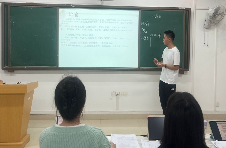 3月27日晚,模拟上课选拔分别在文科综合楼412教室、413教室、414教室进行。本次比赛组别包括小学组、初中组和高中组,选手需根据不同教学段选择课文进行展示,每位选手依次进行5分钟模拟上课。比赛过程中,小学组注重教学娱乐并重的特点,利用音频、简短视频等方式,在有限时间内展示出多彩有趣的教学课堂;初中组以当前国家教育发展政策为指引,注重培养学生的审美鉴赏能力;高中组则落实课标理念,贯彻核心素养教育要求,切实提升学生的阅读理解与整体迁移能力。参赛选手们积极展现自我、发挥才能,表现出了师范生应具备的专业知识与实践素养,展现了文苑学子蓬勃向上的精神风貌。