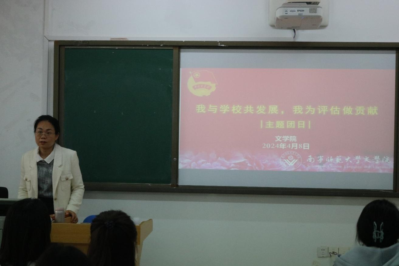 为帮助我院师生了解熟悉审核评估的基本知识,深刻领会评估工作的基本要求,必赢3003no1线路检测中心团委学生会于4月8日在文综楼413教室顺利举办“我与学校共发展,我为评估做贡献”主题团日活动。必赢3003no1线路检测中心辅导员沈珊珊,学生会各部门部长和各班团支书参与本次活动。