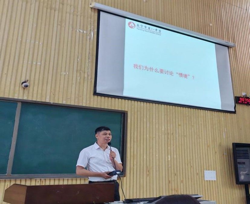 张世福首先从普通高中语文课程标准、高中语文统编教材及高考三个维度谈教学情境任务设计的必要性。他详细解读了教材单元目标及学习任务群和单元教学情景任务设计的基本思路、策略及方法,并通过丰富的教学案例,展示了如何巧妙地将情境任务融入到语文教学中,使抽象的知识变得生动有趣,从而有效提升学生的语文素养。讲座内容深入浅出,既有理论高度,又具实践指导意义。互动环节学生们踊跃提问,现场气氛热烈。