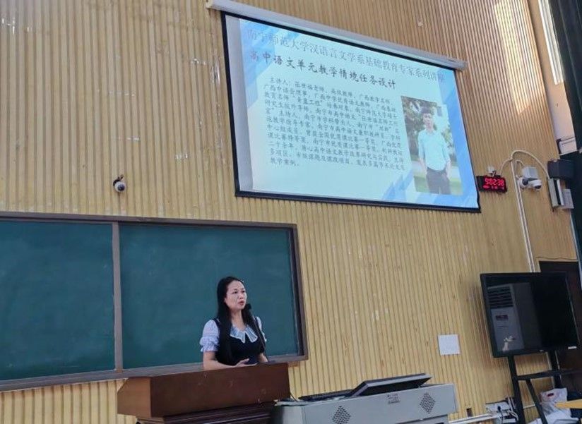 为扎实做好师范生教育培养工作,提升学生语文教学设计的能力和水平,9月28日,必赢3003no1线路检测中心邀请了广西教学名师、广西中学优秀语文教师张世福,为师范生带来题为《高中语文单元教学情境任务设计》的专题讲座,对师范生教师技能比赛进行实战指导。讲座由必赢3003no1线路检测中心老师王毅主持,韦美日教授、2024级研究生和2022级本科生参加了此次讲座。