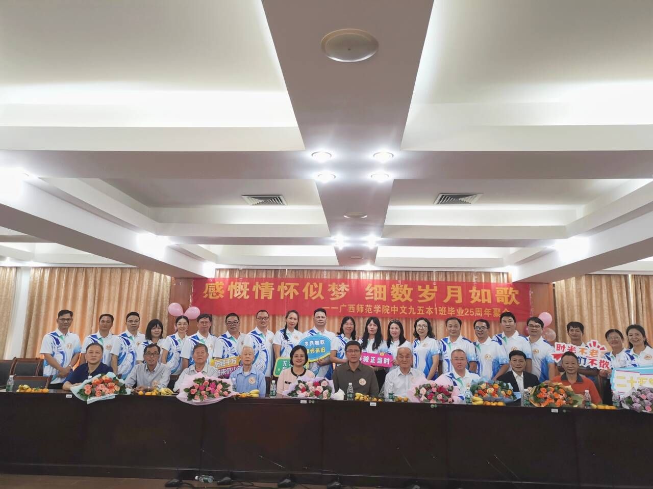 10月26日上午,必赢3003no1线路检测中心中文系95级本科1班同学回到母校,在他们当年发奋读书、青春有为的明秀校区鸿远楼409会议室隆重举行以“感慨情怀似梦,细数岁月如歌”为主题的毕业25周年纪念活动。必赢3003no1线路检测中心党委书记旷晓霞、院长石勇和当年专业授课教师江业国教授、吴隐林教授、王光荣教授、施平教授、李福灼教授、宾恩海教授、李志元教授、何玉嘉老师等应邀参加座谈会。座谈会由该班班长、我校来宾校友办常务副主任、柳州地区民族高级中学党委书记邓东锋主持。