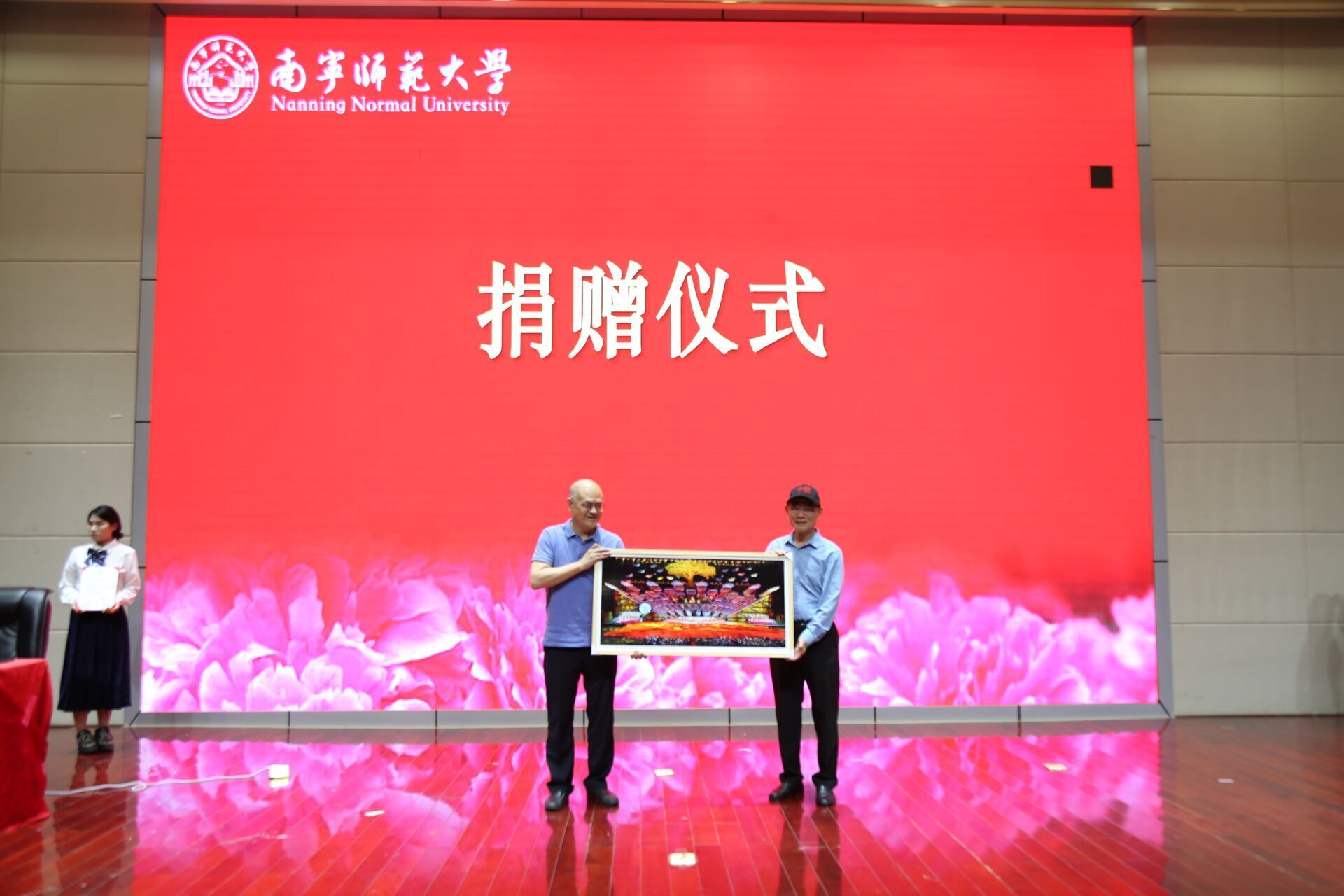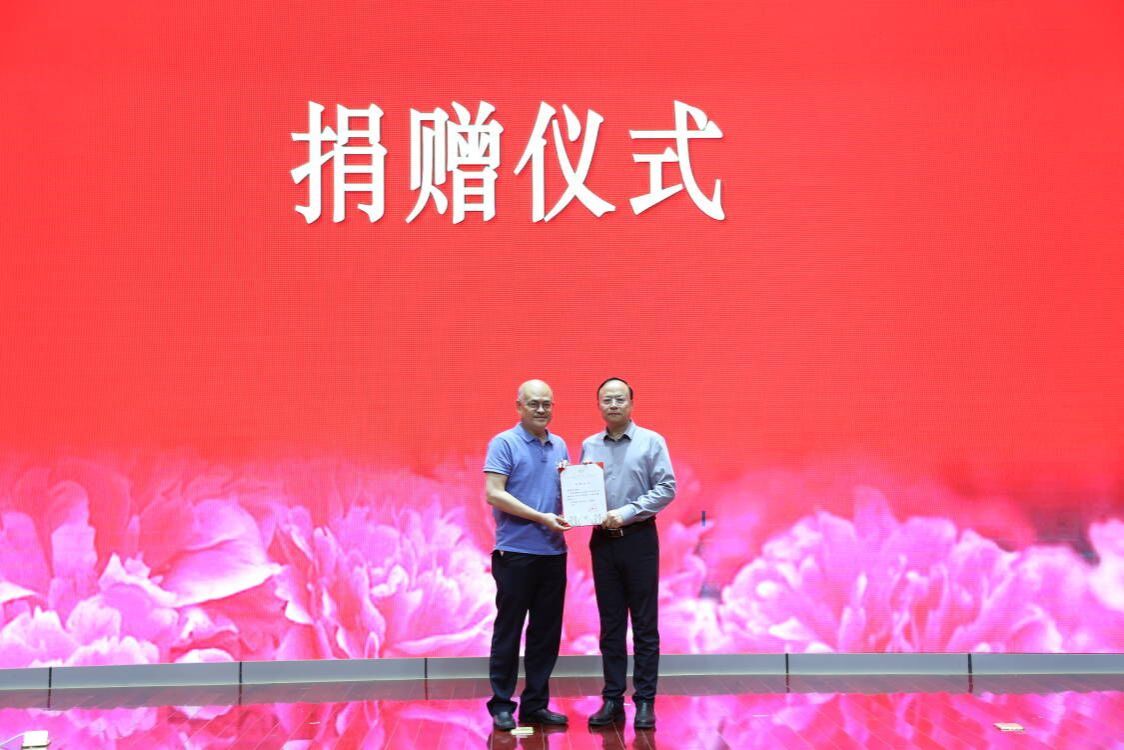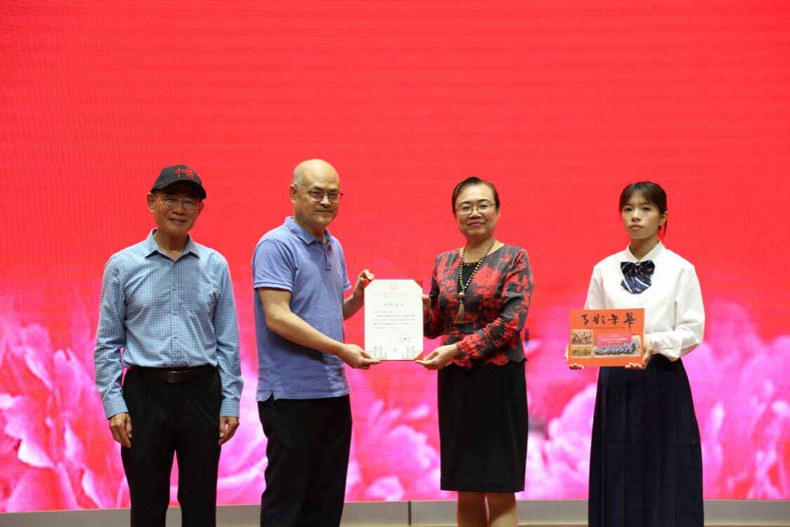 随后,陈小建、陈映红校友向学校捐赠摄影作品、纪念册,黎江影校友向学校捐赠诗集,梁家斌代表学校接受捐赠并颁发证书。
