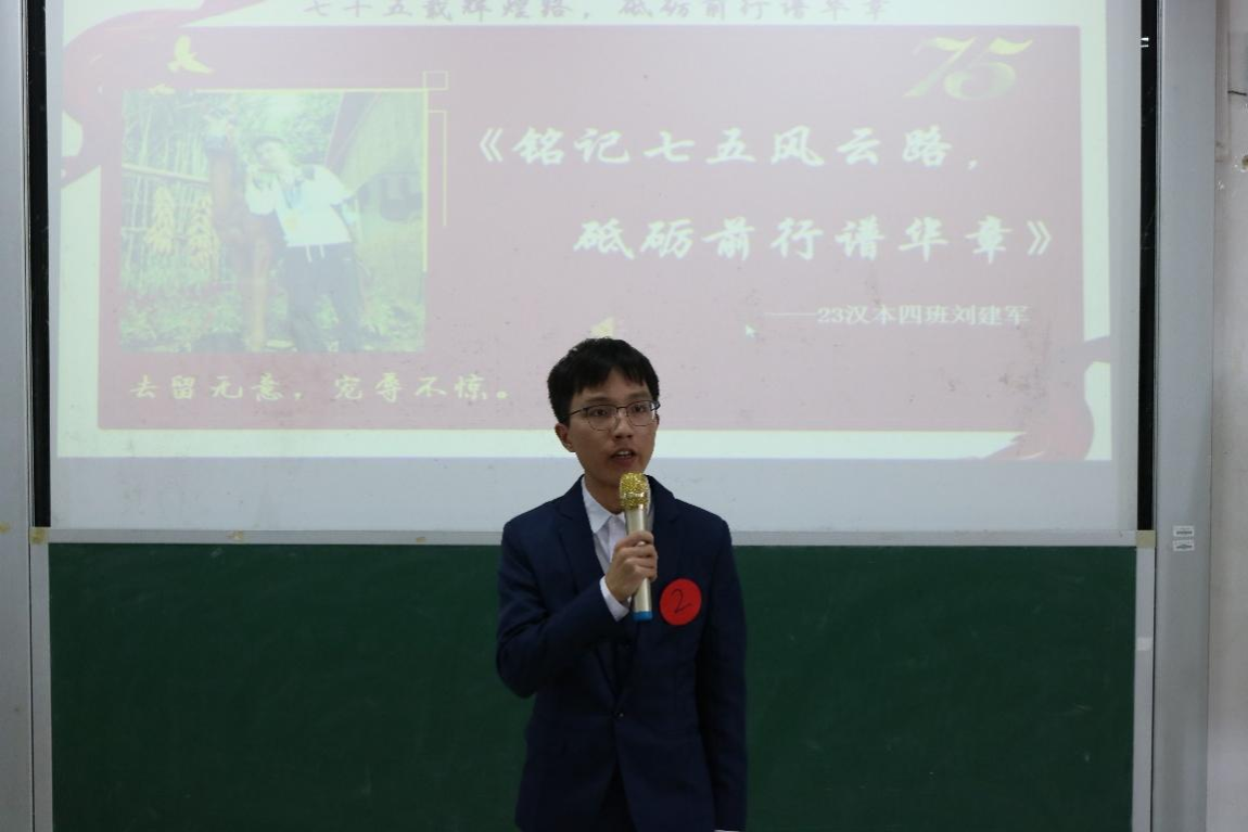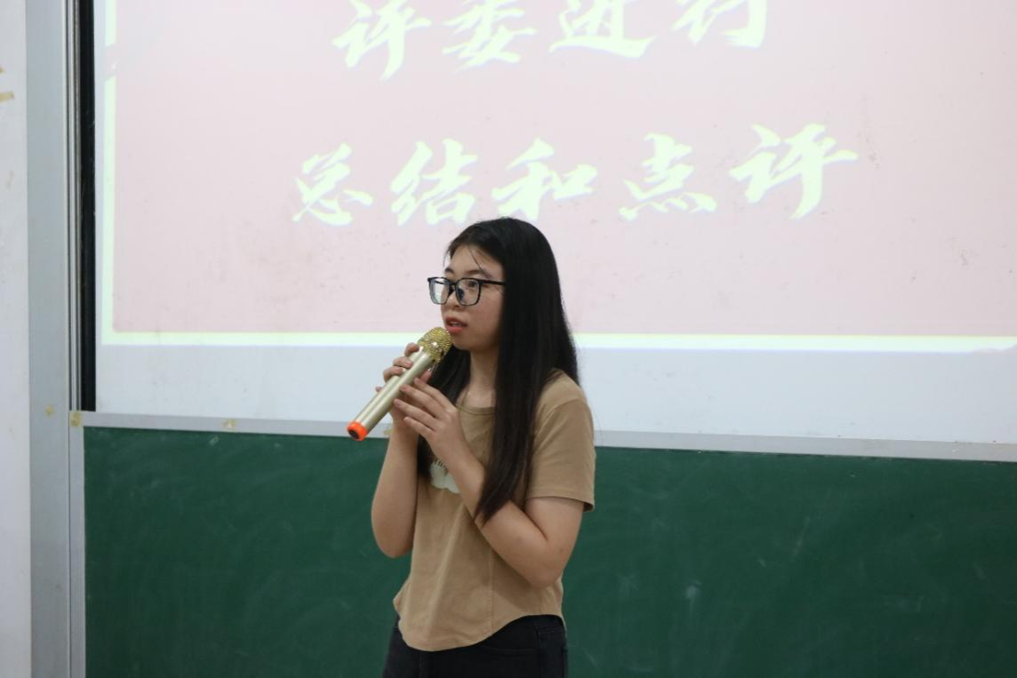 经过初赛的激烈角逐,共有九位选手进入决赛。演讲过程中,选手们用富有感情的声调诉说着于祖国七十五年伟大建设的骄傲与自豪。4号选手黄凯榆用其真挚的感情和临危不乱的强大心理赢得了评委和观众们的喜爱,通过她的演讲,同学们真切地感受到了中国在七十五年里的蜕变。在即兴演讲环节,9号选手王鑫抽到了“命运”这个话题,她以自己的演讲表现为例子,让评委和观众们看到了她的豁达与乐观的心态。在比赛过程中,还穿插了与观众互动的抢答环节,观众们非常热情,将现场的氛围烘托到了新的一个高潮。