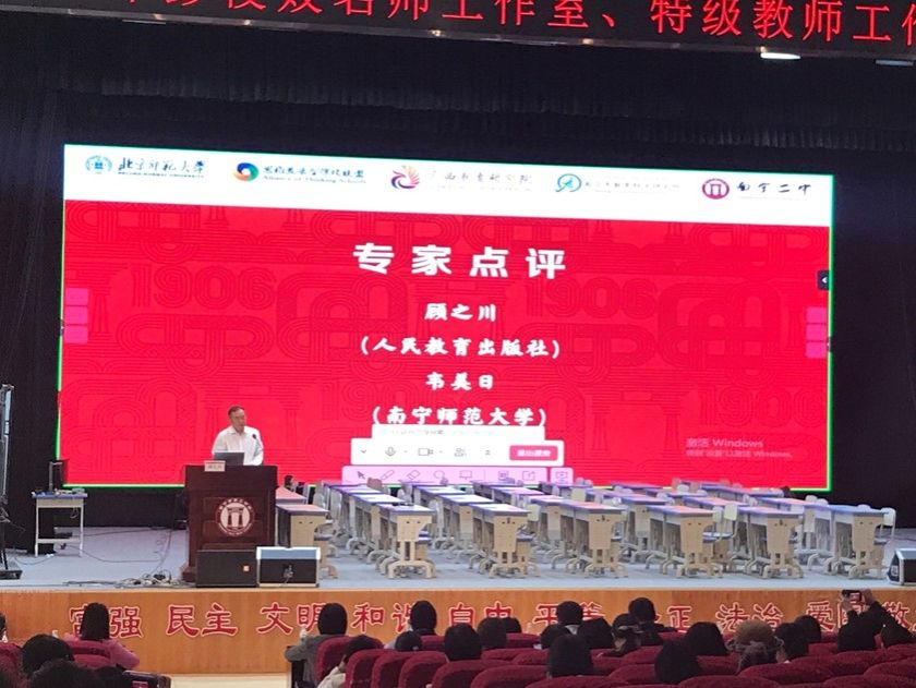 人民教育出版社编审顾之川教授和必赢3003no1线路检测中心韦美日教授对两节课进行点评。人民教育出版社顾之川教授用三句话表达了自己的听课感受,高度肯定了两位老师展现的现场课例。顾教授指出高中语文教学是在小学初中教学的基础上拓展阅读的宽度、表达的厚度和思维的深度与广度。教师要引导学生多读书、勤思考、勤练笔、多实践,多实践就是把书本的语言和社会生活实践结合起来。培养学生享受阅读、乐于表达、勤于思考、自主学习的四个好习惯。韦美日教授用一句“指向思维品质提升的作文课程”来总评了二中的作文课。韦教授从高中课标中的作文教学出发,对两节课例“真作文”中的思维类型和品质进行了深入浅出的分析,并提出了五条在作文教学中灵活运用提高思维品质的方法。最后,韦教授相信教学有法,教无定法。不同个性的师生,会创造出不同的充满个性的教学方法,有效提升学生的思维品质。