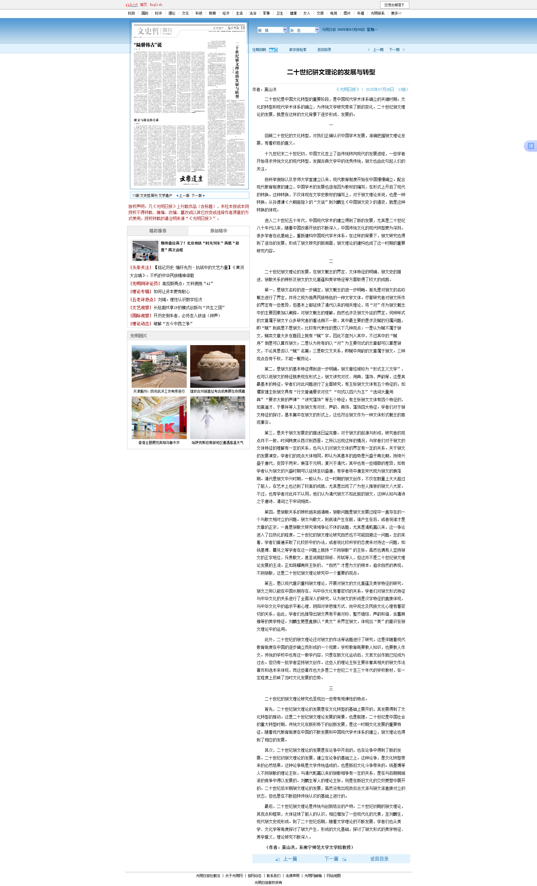 近日,我校必赢3003no1线路检测中心莫山洪教授的理论文章《二十世纪骈文理论的发展与转型》,在《光明日报》(2025072813版)上发表。这是莫山洪教授在骈文学史领域坚持长期深耕细作的硕果,也彰显了我校中国语言文学学科建设成效。我们将以此为契机,充分发挥人才引领作用,推动中国语言文学学科深入发展。