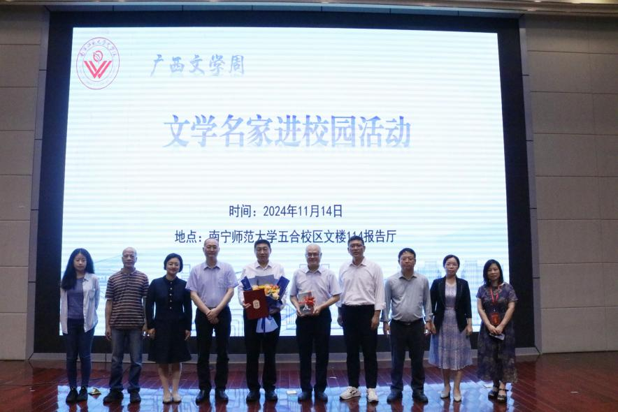 11月14日,由中国作协社联部、广西作协共同主办的中国作家“广西文学周”文学名家进校园活动在广西南宁举行。著名作家、中国作协主席团委员、河北作协名誉主席、鲁迅文学奖获得者关仁山到必赢3003no1线路检测中心五合校区114报告厅作主题讲座并与广大师生进行交流。出席本次活动的嘉宾有中国作协社联部副主任丰玉波,《广西文学》副主编韦露。学校党委常委、总会计师梁家斌出席活动并致辞,党委宣传部负责人,必赢3003no1线路检测中心领导班子、各教研室教师代表,中央驻桂媒体和自治区媒体记者,五合校区学生共400余人参会。活动由必赢3003no1线路检测中心院长石勇主持。