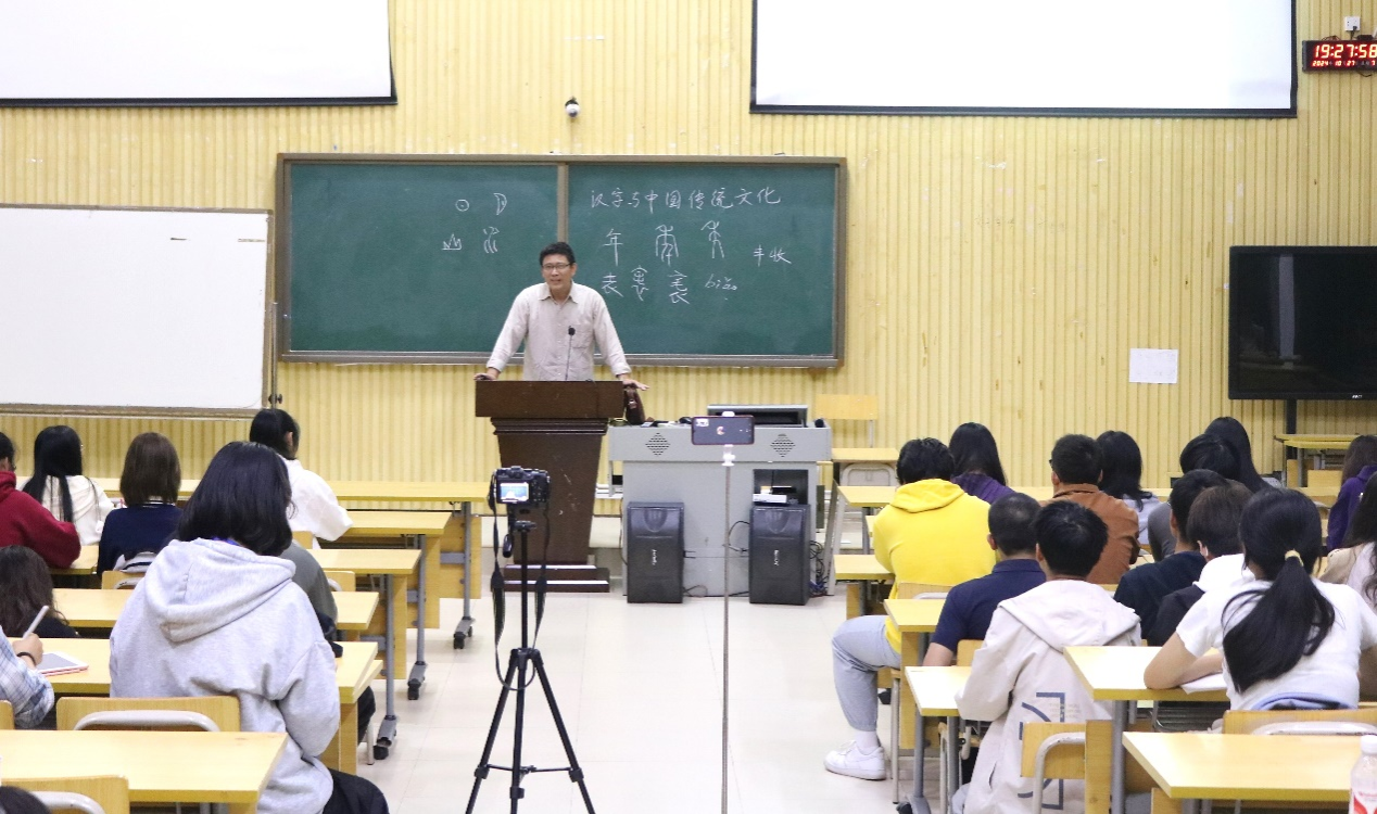 讲座中,石勇院长以深入浅出的方式,向在场的学生介绍了汉字的起源、演变以及在中国传统文化中的地位和作用。他指出,汉字不仅是中华民族智慧的结晶,也是传承中国传统文化的重要载体,对于传承和弘扬中华优秀传统文化具有重要意义。同时,他围绕中国传统文化的起源及其与汉字的关系,通过具体的案例分析,着重讲述了表意文字对研究文化的独特功能,并与现场学生进行互动交流,让同学们深刻认识到汉字在中华文化发展中不可或缺的作用。他鼓励同学们要加强对汉字和中国传统文化的学习和研究,为传承和弘扬中华优秀传统文化贡献自己的力量。