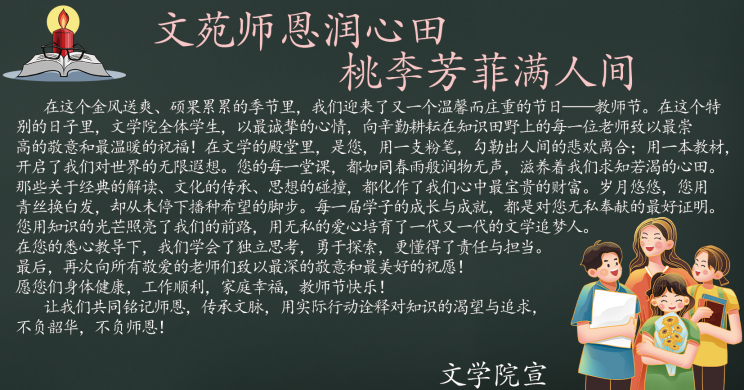此次黑板报的绘制,通过文字和插图,充分表达了文苑学子对教师的感恩之情,并呼吁大家铭记师恩,传承文脉,用实际行动诠释对知识的渴望与追求,不负韶华,不忘师恩。